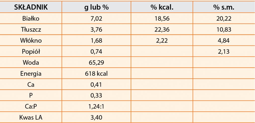 Dieta niskomiedziowa – zawartość miedzi w diecie poniżej 6 mg/kg. Przykładowa dawka dzienna diety „bezmięsnej” dla psa o m.c. 28 kg z potwierdzoną toksykozą miedziozależną. Zawartość miedzi w diecie wynosi 1,63 g i jest niższa niż minimalne zapotrzebowanie na ten składnik dla psa o m.c. 28 kg. Niska zawartość białka w diecie (20,8% s.m.), wysokiej jakości.
